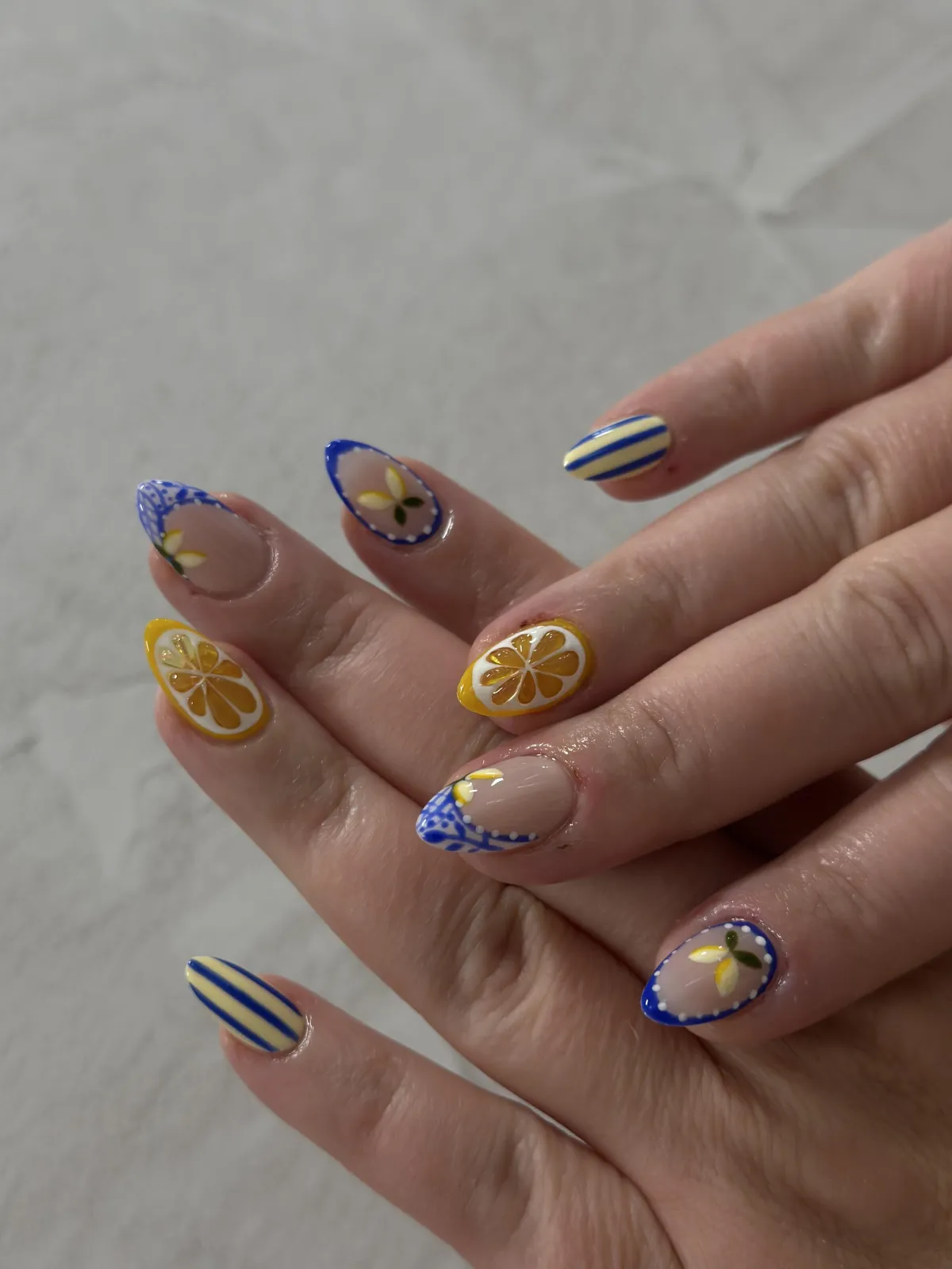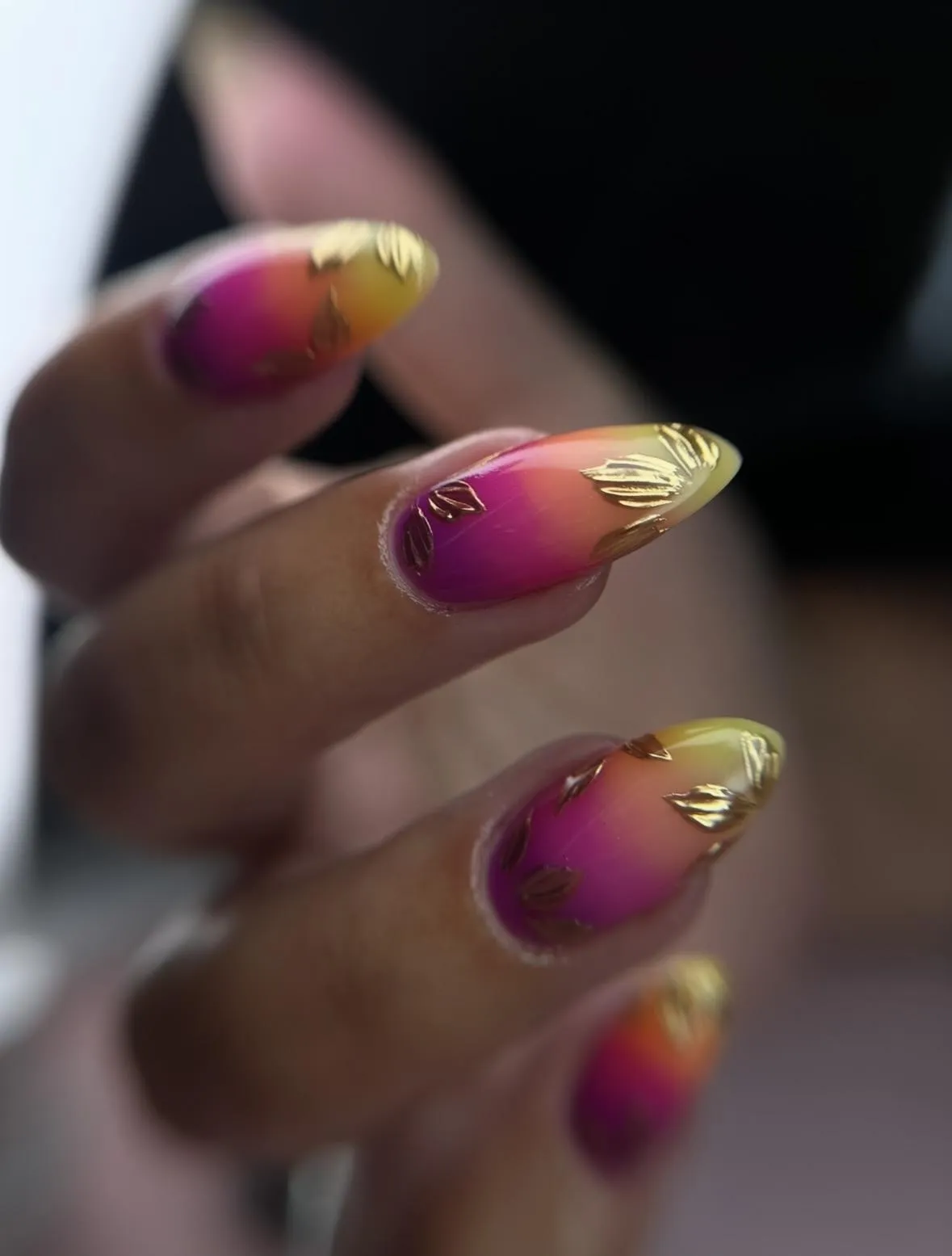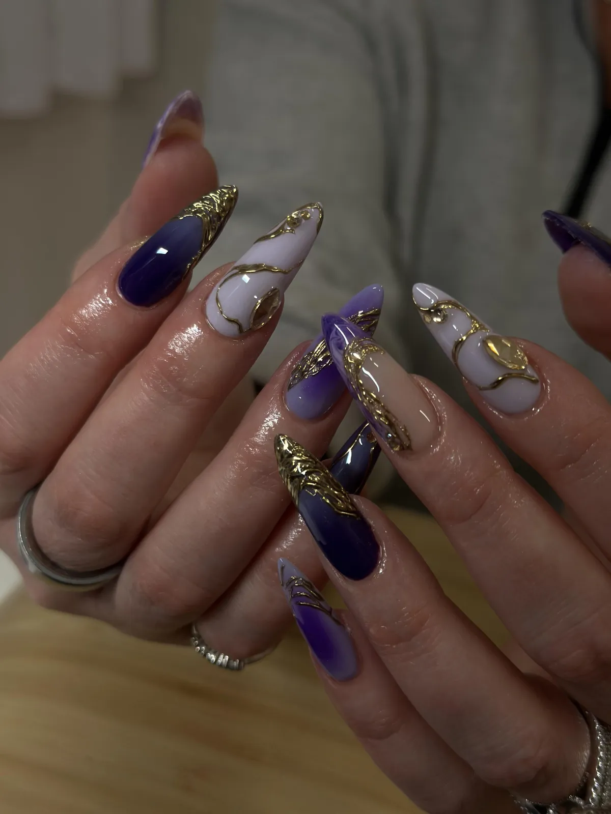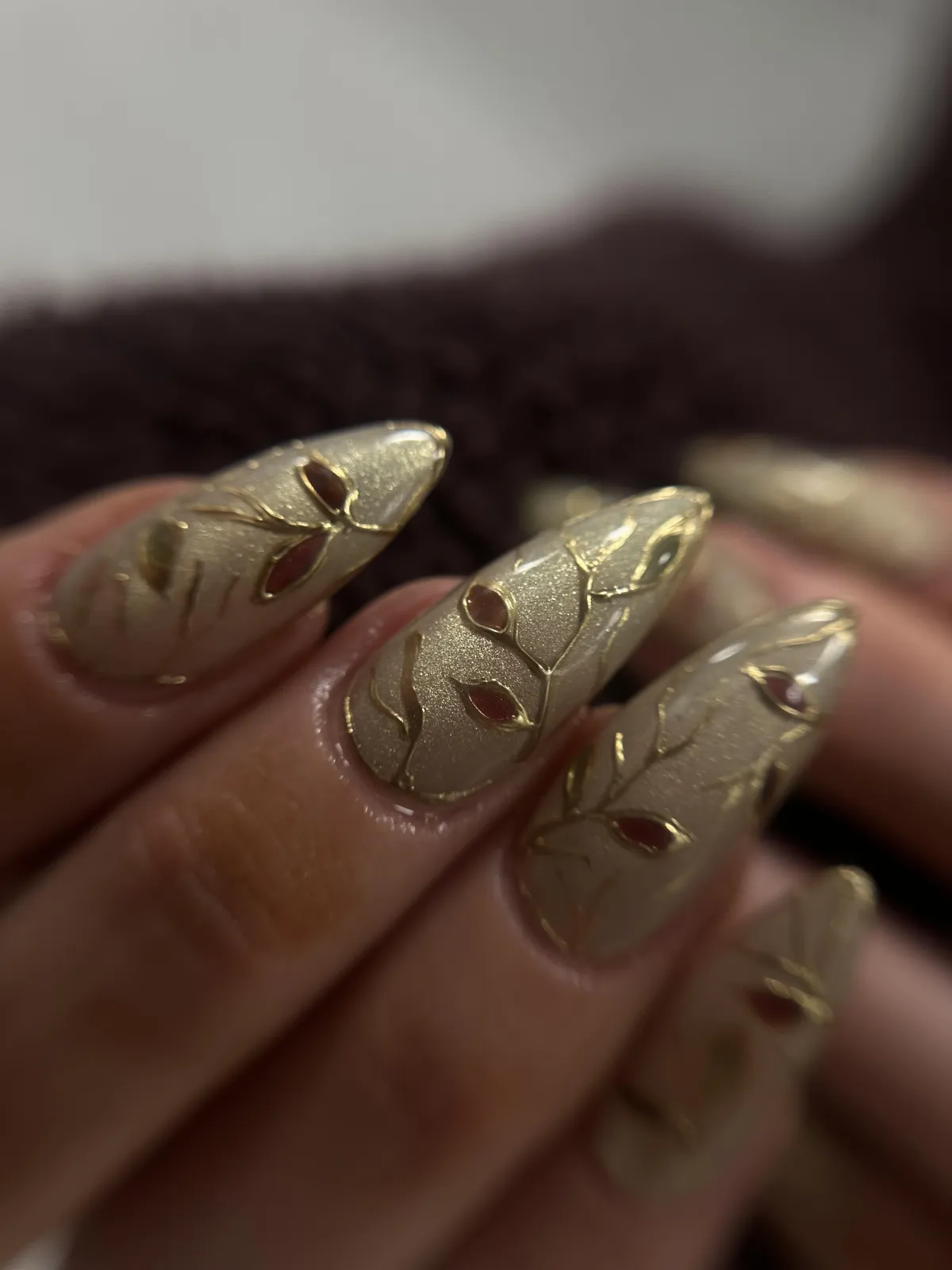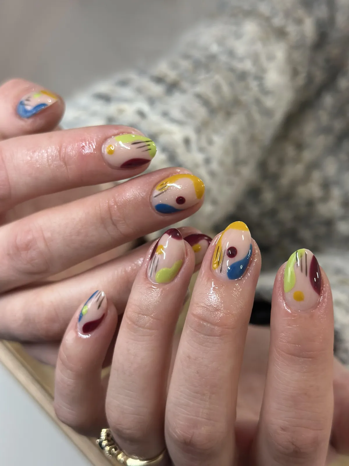 Your chosen gel color and any custom nail art or design are applied.