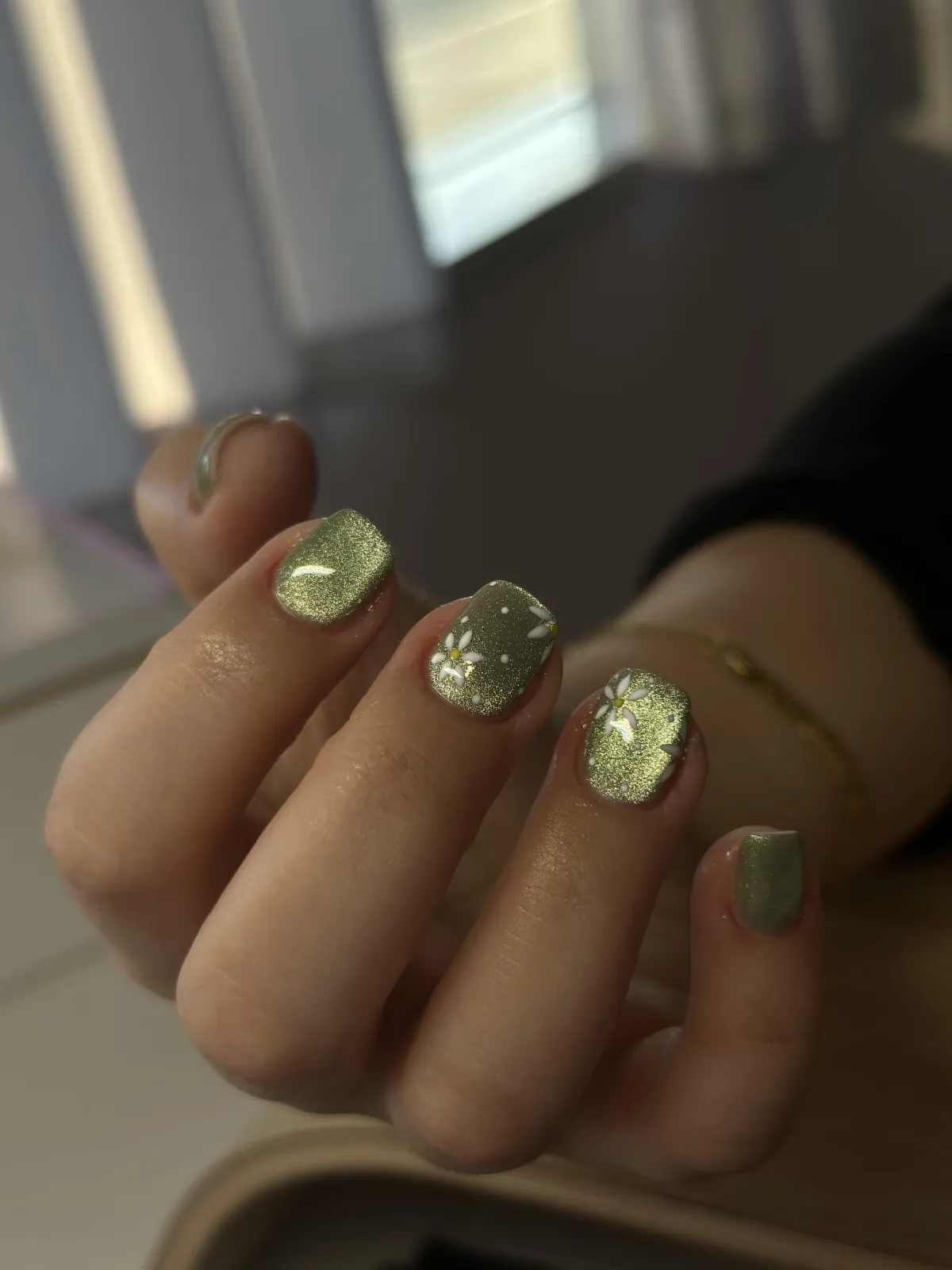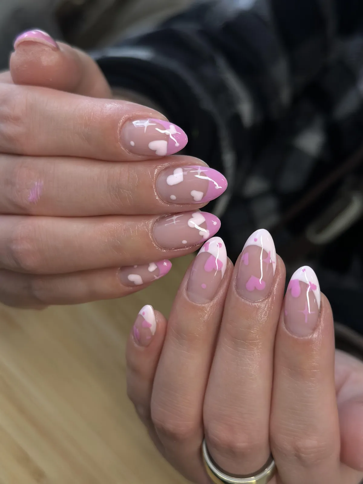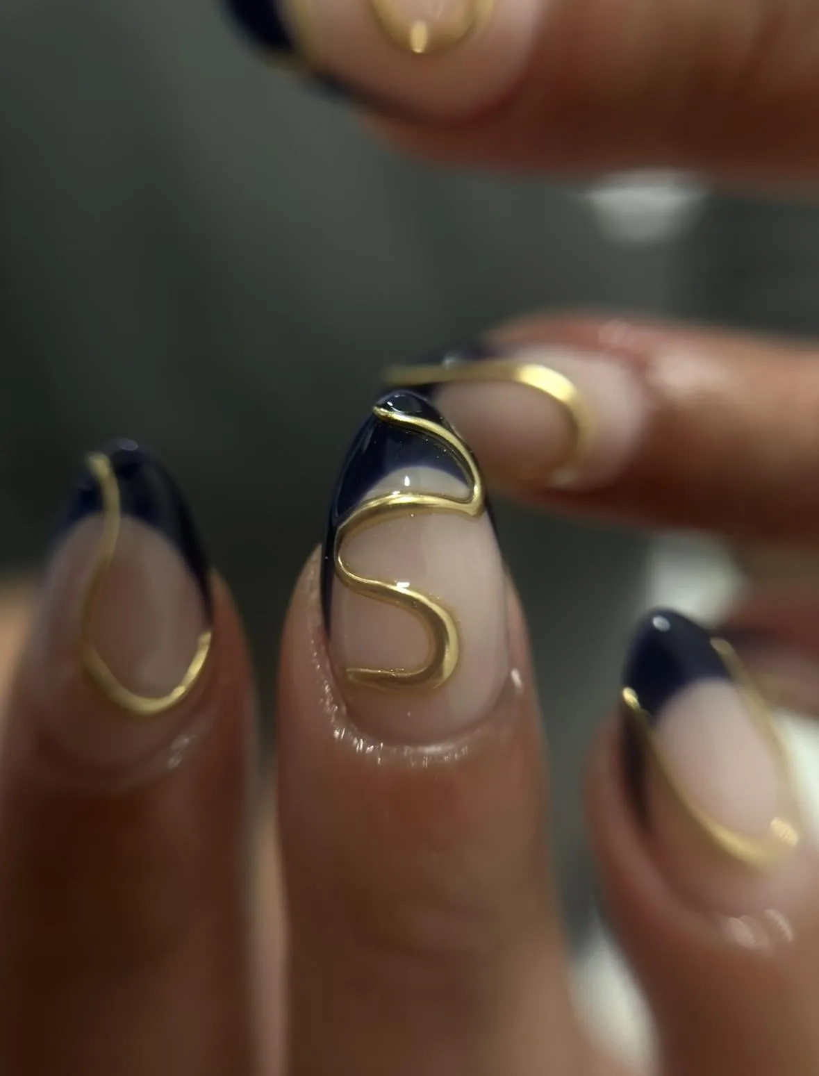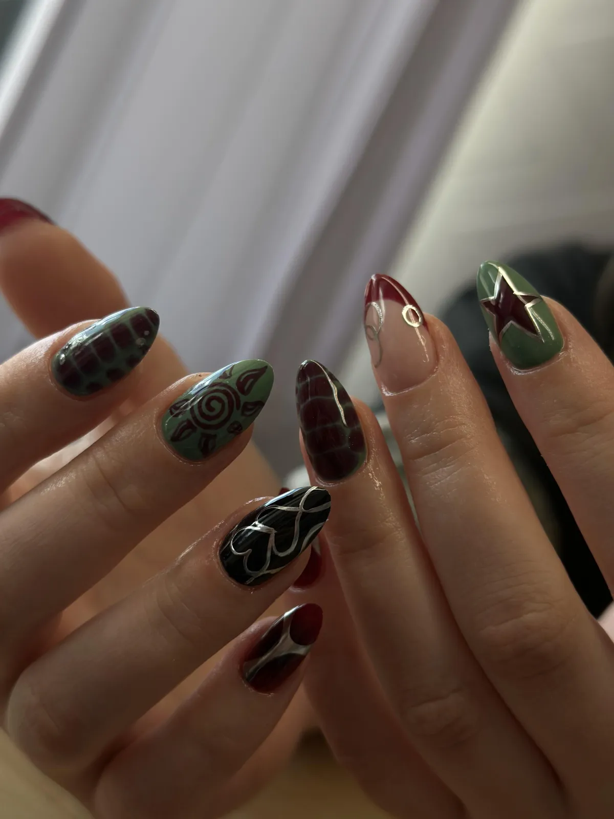Your chosen gel color and any custom nail art or design are applied.
